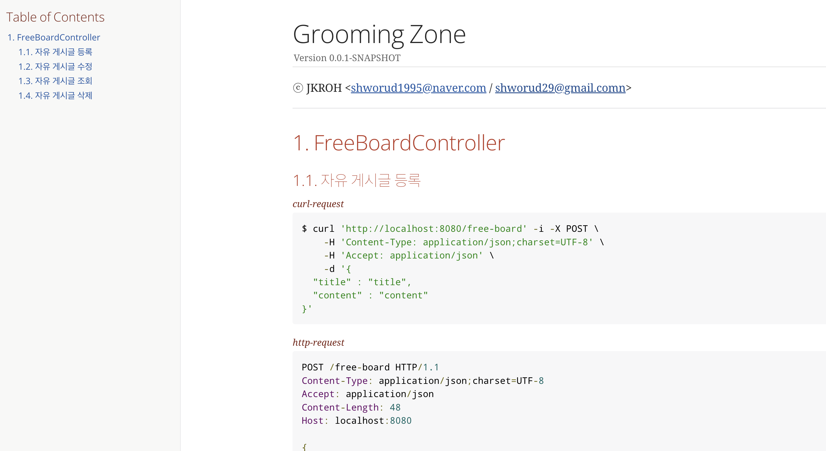 - "post-free-board"는 API 문서 스니펫의 식별자 역할을 한다. 문서 스니펫은 post-free-board 디렉토리 하위에 생성된다.