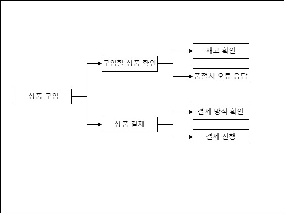 해당 다이어그램은 '상품 구입'이라는 기능을 단계별로 분해한 것이다.