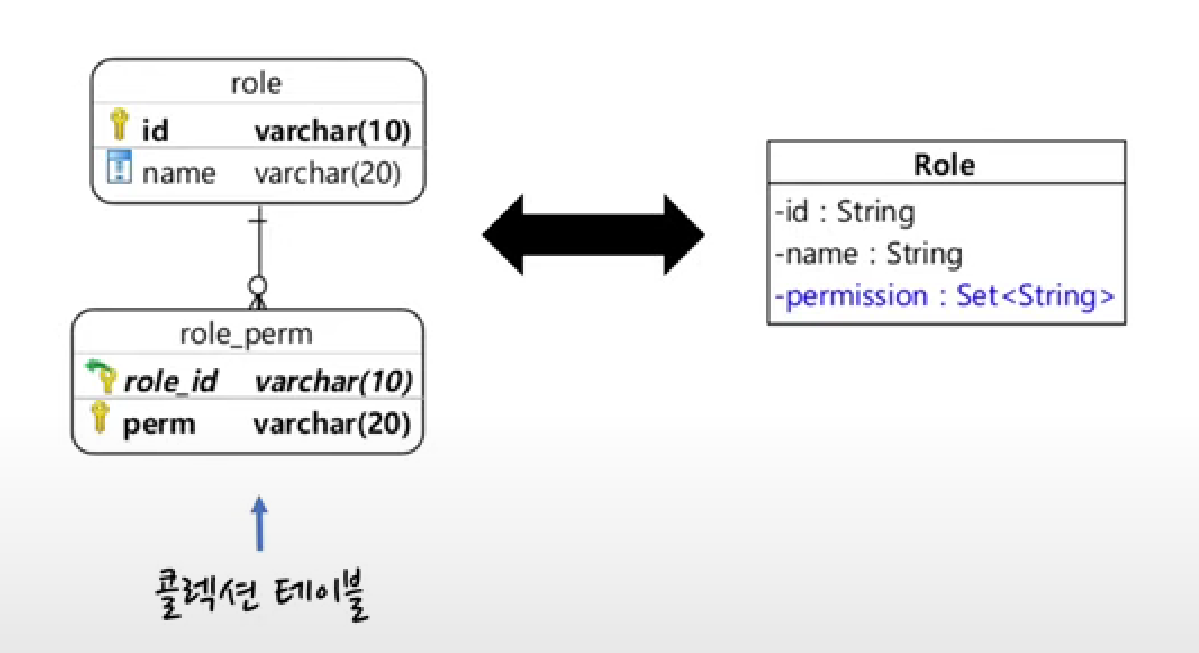 - 이런 테이블을 자바 내에 표현하면 Role 객체 내의 Set으로 담게 표현할 수 있다.