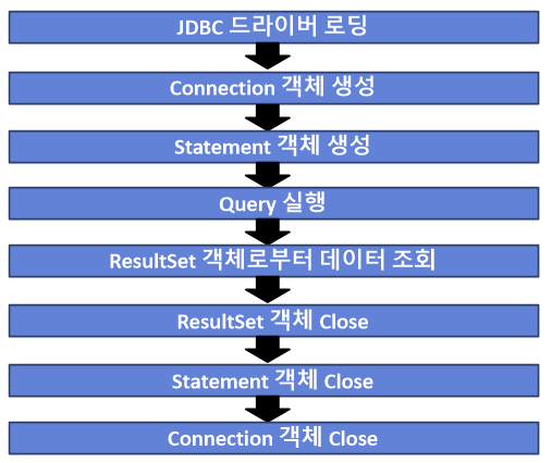 - JDBC API라고 무작정 DB에 접근할 수 있는 것은 아니다. DB 드라이버(JDBC 드라이버)를 로딩해 DB와 연결한 뒤 여러 작업을 수행한다.